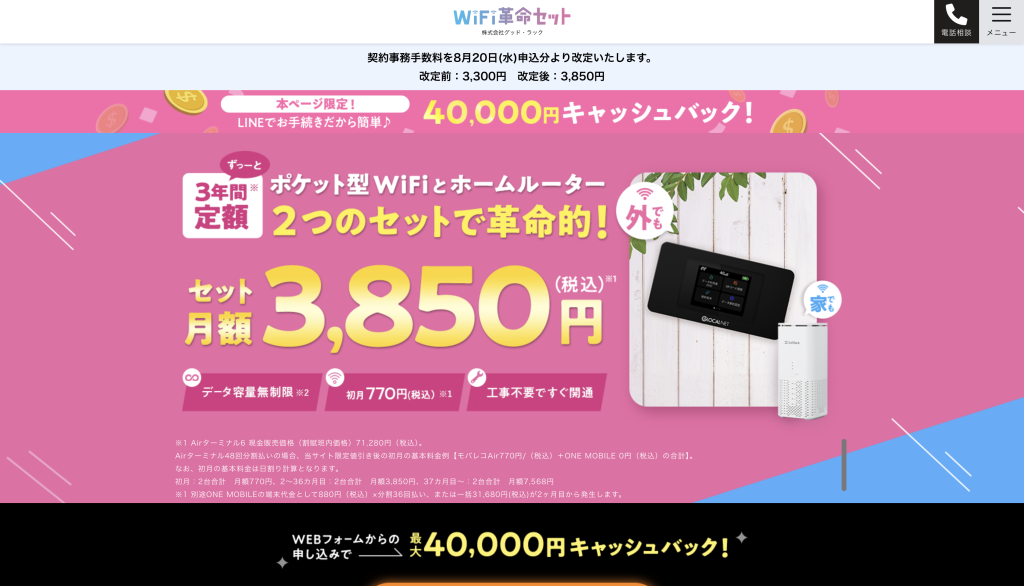割引だけでなく、キャッシュバックやスマホとのセット割、そのほかキャンペーンなどが受けられるモバイルルーターになると、お得感は増しますし「実質月額料金」はさらに低くなります。