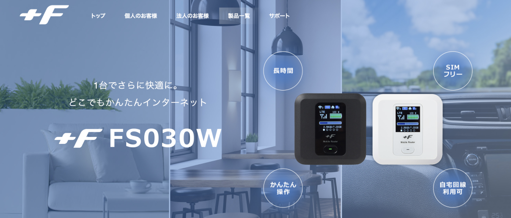 SIMフリーのモバイルルーター端末自体も、各メーカーから販売されていますが、おすすめは「富士ソフト+FFS030W」のSIMフリー端末です。