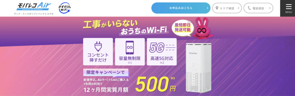 開通工事が不要で、端末が届き次第すぐに使えるようになります。