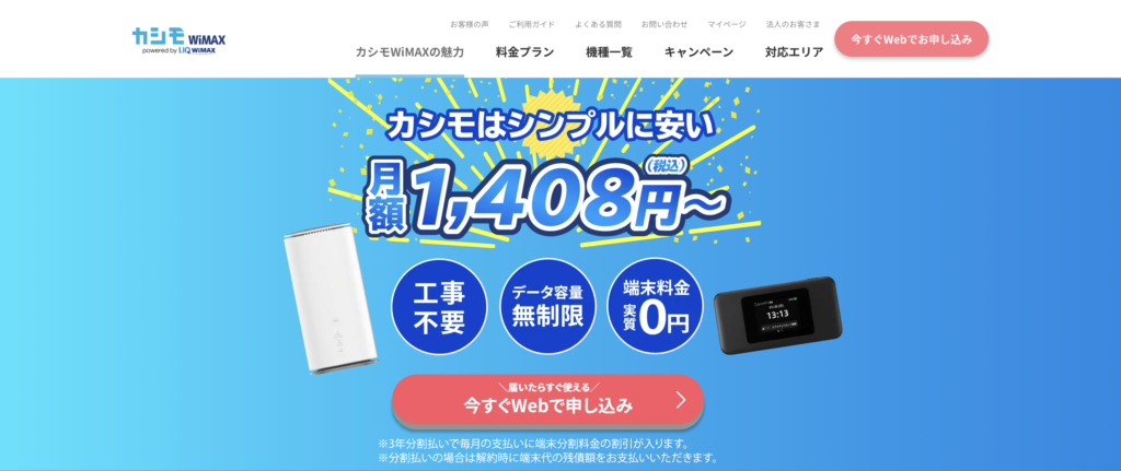 Broad WiMAXは、WiMAX+5Gサービス15社の中でも最安値のホームルーターです。