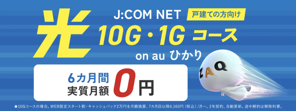 | J:COM光 | 【戸建て】 1ギガプラン:5,610円 10ギガプラン:6,160円 【マンション】 1ギガプラン:5,258円 10ギガプラン:6,886円 |