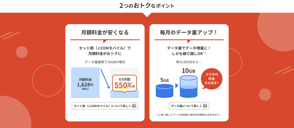 ・J:COMモバイルとのセット利用で データ容量毎月最大10GB増量