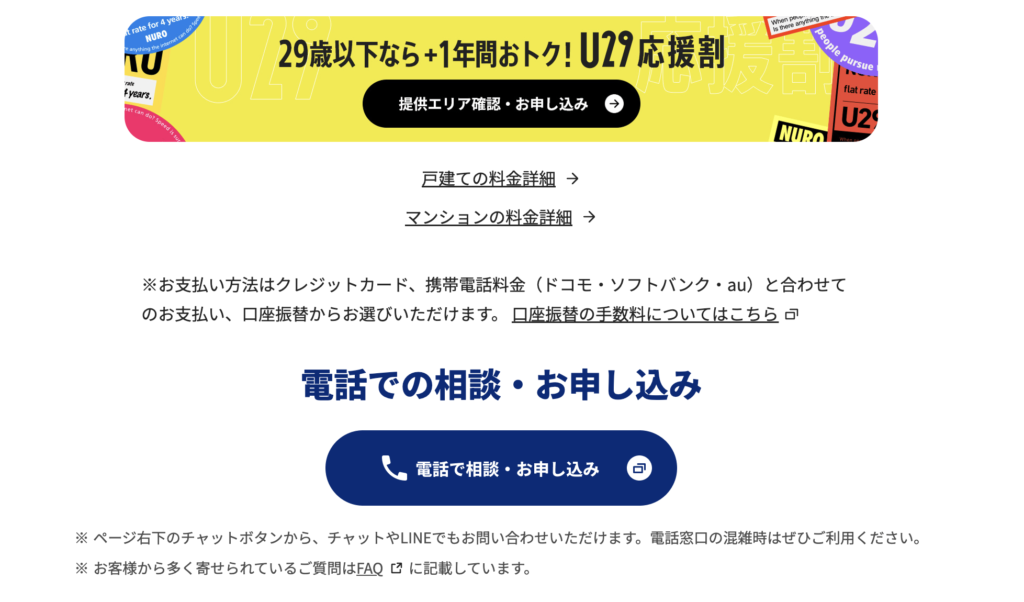 U29応援割は、特設サイトではなく通常のNURO光公式サイトからの申し込みで適用となります。