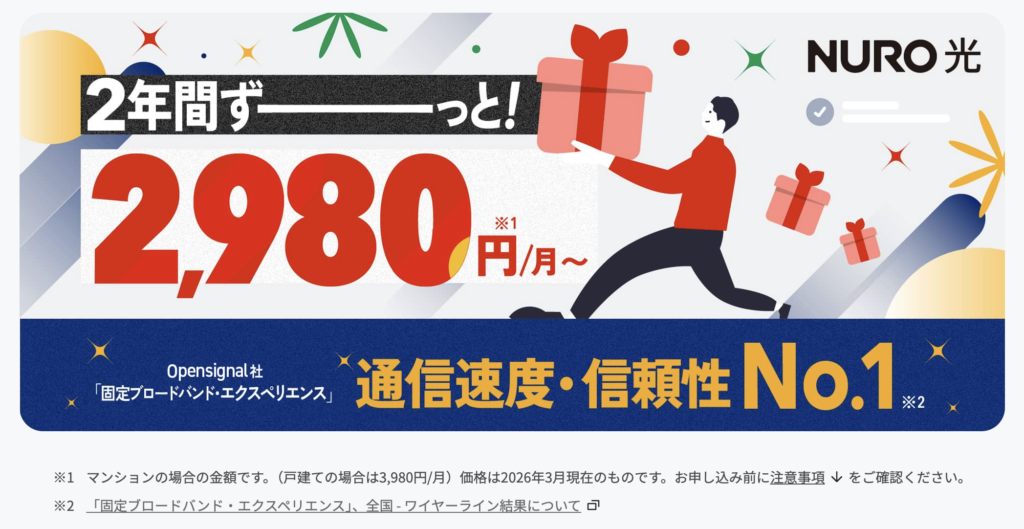 の3点が、キャンペーンに関する注意点となっていますので、NURO光をお得にお使いただくために、こちらも併せてご確認ください!