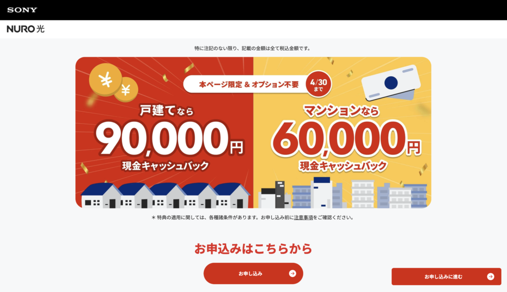 そしてキャッシュバックが高額でお得なのでNURO光を検討している方も要注意です。