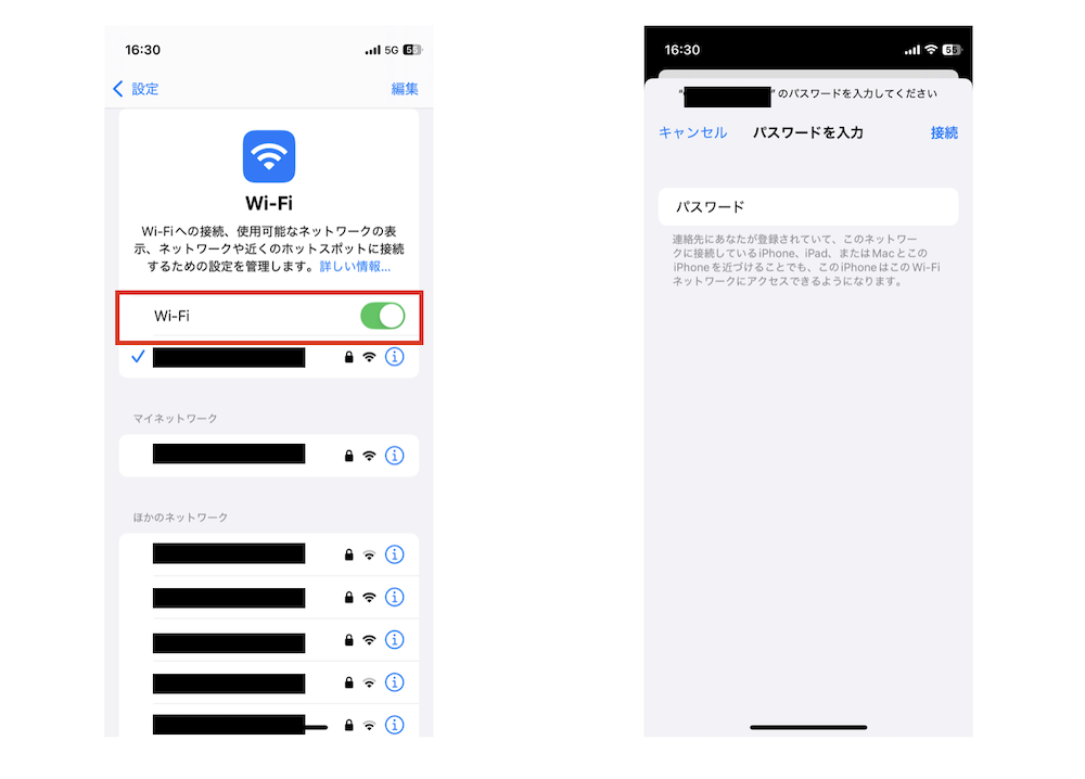 QRコードでうまくいかない場合は、先ほどのパスワードを手動入力で接続してみてください!