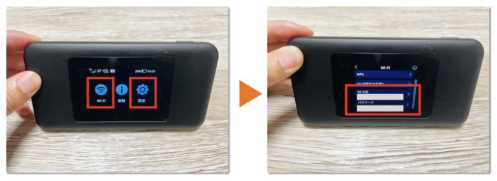 接続する端末で、3で確認したSSIDを選択し、パスワードを入力し、接続を完了します。