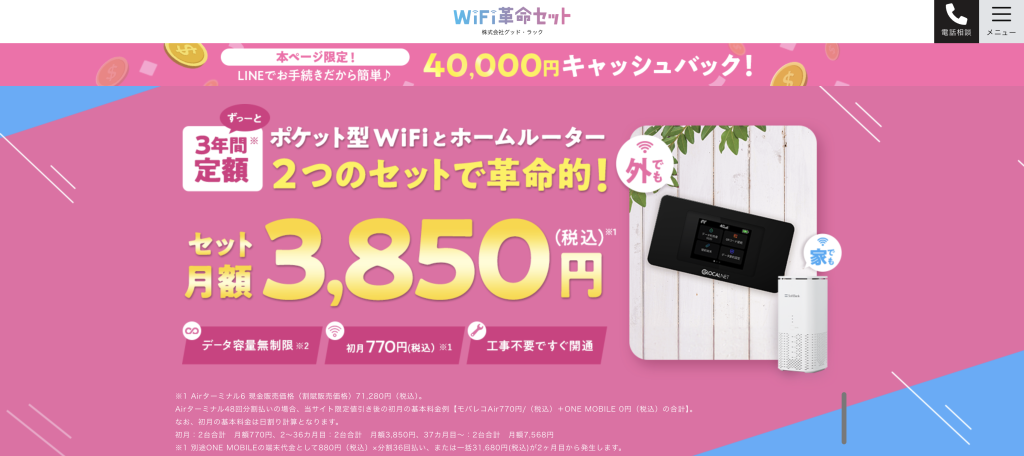 ポケットWiFiとホームルーターがセットに「WiFi革命セット」