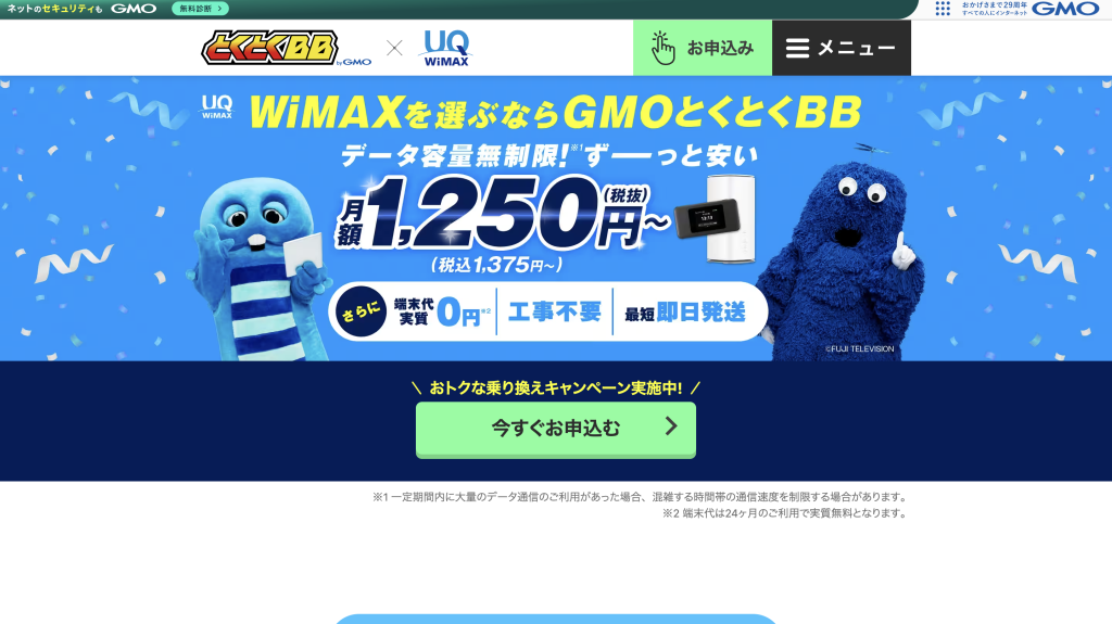 今回、通信速度はみんなのネット回線速度の実測値を記載していますが、WiMAXについては同じ端末・回線を使用するため速度は同じになります。