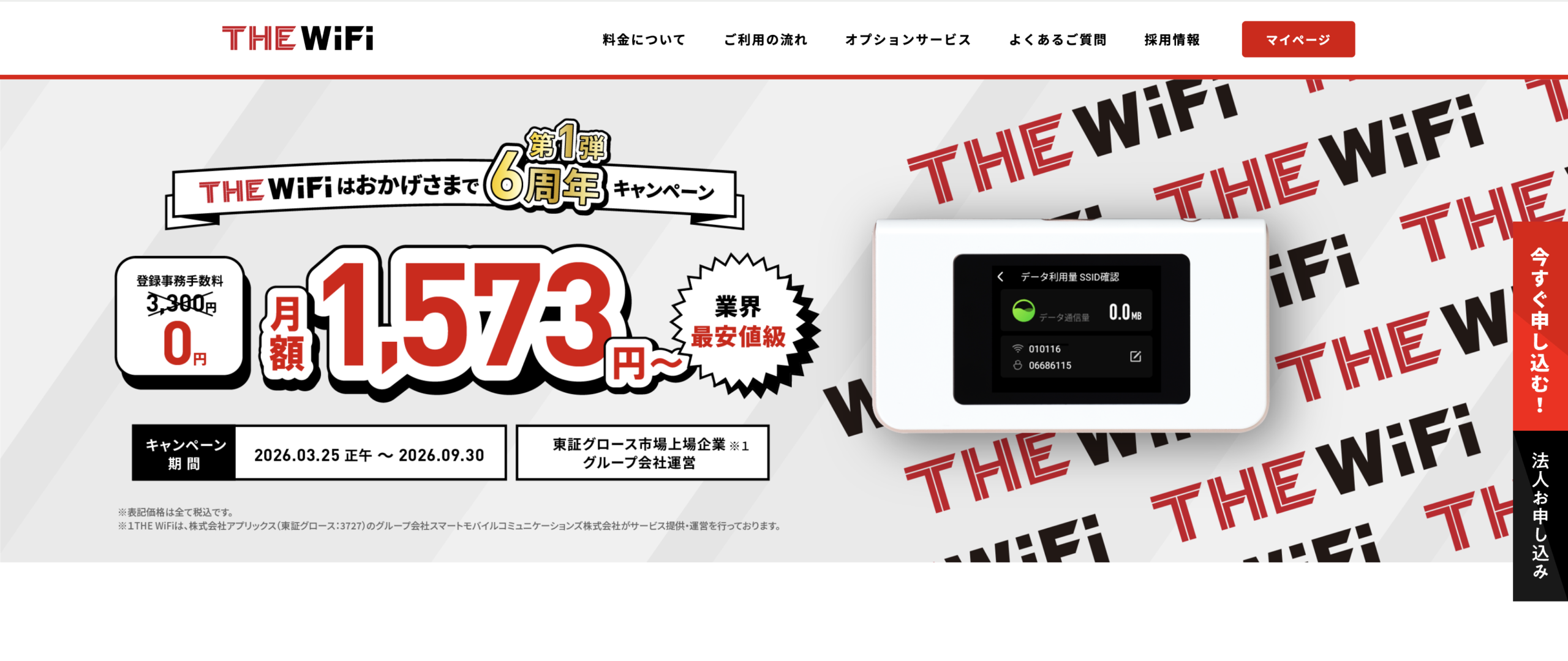 今開催中のキャンペーンを利用すれば、4ヶ月間0円ではじめられるTHE WiFi!