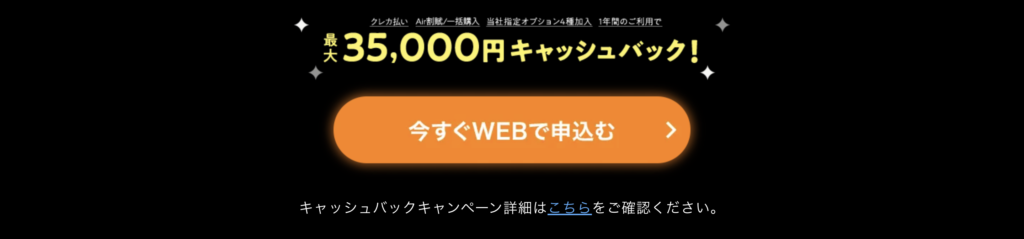 | 特典 | 最大35,000円の現金キャッシュバック |