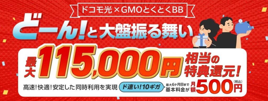 さらに、違約金・撤去工事費を含む高額還元キャンペーンが多く、乗り換え費用をほぼ相殺できるケースもあります。IPv6(v6プラス)対応で速度面も安定しており、「料金を下げたい」「家族でまとめたい」人に向いた光回線です。