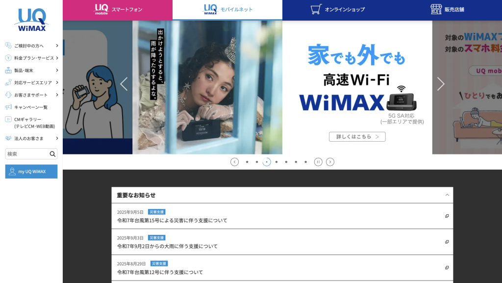 エリアは順次拡大中ですが、5Gの使用できるエリアはまだ限られるので、使用前にUQ WiMAX公式サイト内でサービスエリアを確認しておくことをおすすめします。