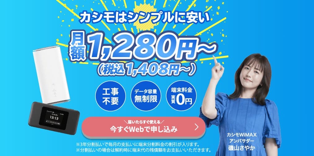 カシモWiMAX|業界最安級で使用可能